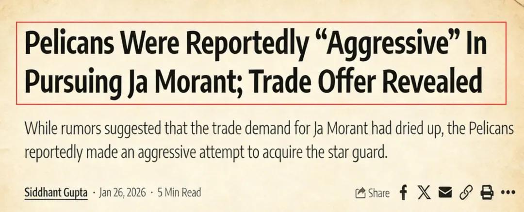 据悉,在过去一段时间里,鹈鹕管理层在追求莫兰特一事上态度非常积极,先后向灰熊提出了两套交易方案: