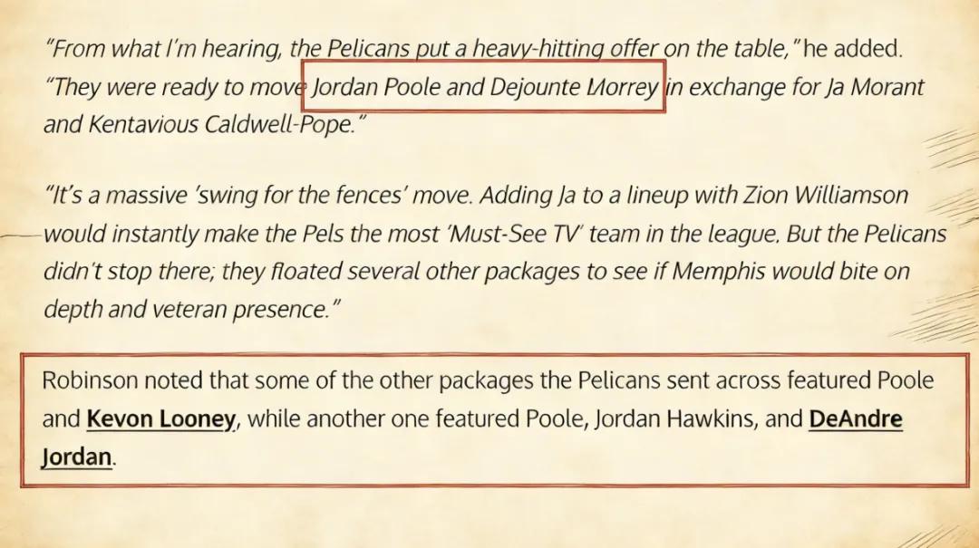 之后不久,鹈鹕又提出了第二套交易方案,即鹈鹕送出普尔和默里,换取莫兰特与波普。